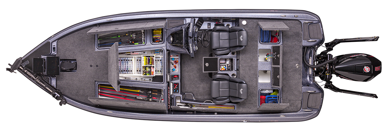 The deck layout includes a massive center storage box with built in rod storage to ensure anglers maximum efficiency on the water. We have included a day box in front of the driver’s console to allow for quick access to your favorite baits. The all new driver’s console and bow shroud have been designed to accommodate larger graphs flush mounted.